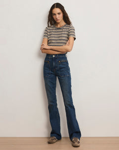 Our bestselling Beverly skinny-flare jean—now with zippered patch pockets for a modern, utilitarian edge. Made in LA from super-stretch Italian denim, it features the high-rise waist and subtly flared leg you know and love, fitted through the hips and thighs for a flattering, leg-lengthening silhouette. Tuck these patch-pocket jeans any of our tops and add sky-high heels for an effortlessly chic, head-turning look.