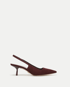 A classic that never goes out of style, the Cashel is the definition of sleek versatility. Crafted in buttery burgundy suede, it features a chic kitten heel, pointed toe, and elasticated slingback strap—finished with a cushioned leather footbed for all-day comfort. This slingback heel is a hero piece that pairs seamlessly with anything in your closet.