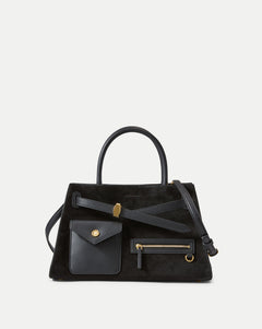 Our best-selling, go-anywhere Dash Bag—now updated with statement cargo details. Crafted from butter-soft Italian suede and lined with soft microsuede, it features our signature adjustable leather belted strap and gold-toned hardware, accented with a front flap patch pocket and zippered pocket for a utilitarian edge. Designed with both a structured top handle and a removable shoulder strap, it offers maximum versatility, complete with an interior zip pocket and magnetic closure for everyday ease.