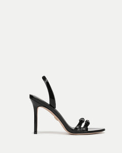 A sleek slingback to take you from desk to drinks. The Austin is crafted in glossy black patent leather and features double buckled straps, a rounded toe, and an elasticated slingback strap. A four-inch stiletto heel elongates the leg, making this open-toe shoe a sleek choice with everything from mini dresses to wide-leg pants.