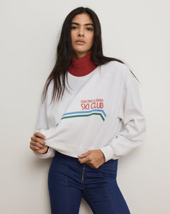 Welcome to the VB Ski Club. Crafted from a ring-spun cotton blend, this sweatshirt has an ultra-soft hand feel. Featuring an Après Ski motif with “Veronica Beard Ski Club” on the front, it flips to “Veronica Beard Sun Club” on the back. Designed for a cropped, relaxed fit, it’s finished with a classic crewneck and wide ribbed trim along the sleeves and hem. The perfect throw-on-and-go layer—ideal for wherever your adventures take you.