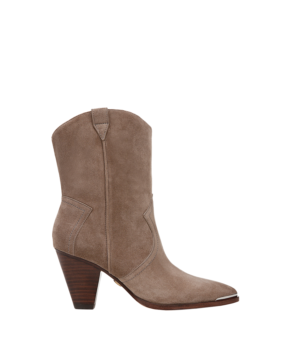 A modern take on the classic Western boot. Cody takes the traditional details—pointed toe, curved top-line, pull tabs, and angled stitching—and reimagines them with clean lines. Wear these suede cowboy boots with jeans or under fluid skirts.