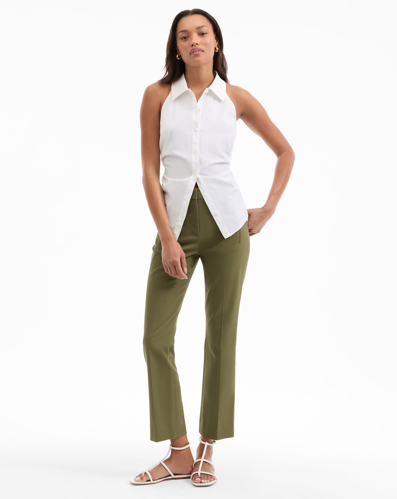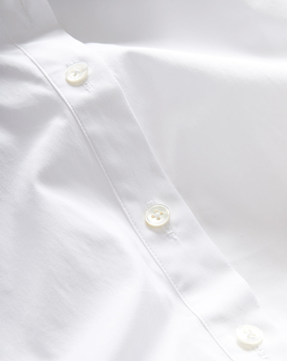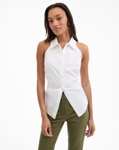 As essential, elevated. We reimagined the classic white button-down in a sleeveless silhouette and added an exaggerated angled cutaway hem. Wear it alone or as a layering essential—this sleeveless collared shirt will be your new wear-anywhere go-to.