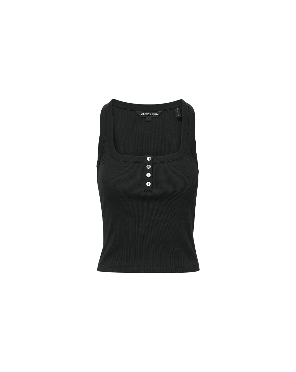 An essential, elevated. Endlessly versatile, the Abbott tank top in black is defined by a slim fit, a square neckline, wide straps, and a soft stretch-cotton fabrication. A partial placket down the front gives you the flexibility to wear it buttoned up or open for a more laid-back vibe. Perfect on its own or as a layering piece, this square neck tank top is the ultimate wardrobe staple—wear it under a blazer or cardigan, with jeans, skirts, you name it.