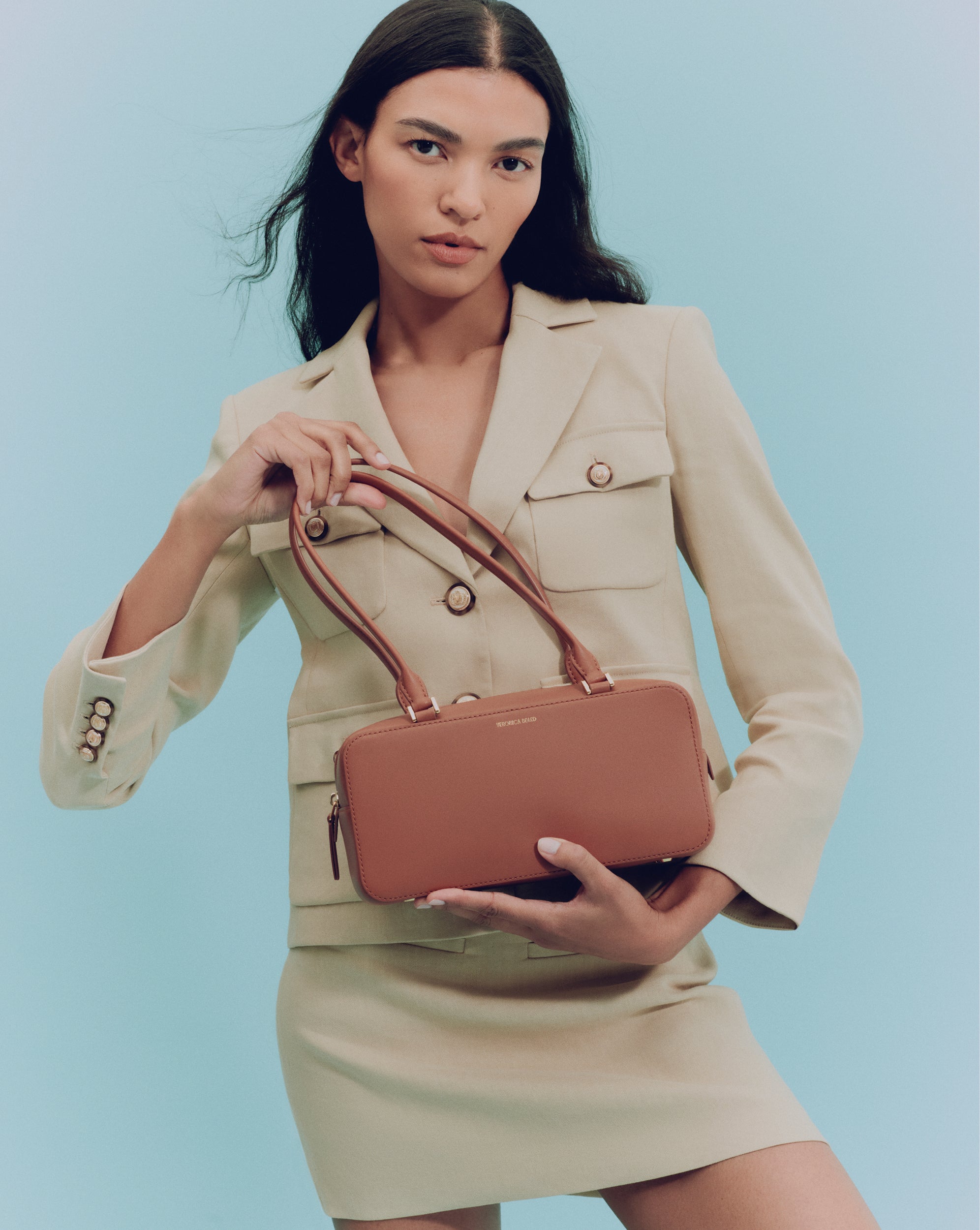 The look of a tailored skirt with the comfort and coverage of shorts underneath. Expertly tailored from Italian stretch linen, the Alvara mini skort features a clean and streamlined A-line silhouette. Front welt pockets add subtle detail while the slim fit ensures a sleek finish. Dress this beige skort down with a simple tank and flats or pair with a matching khaki jacket and slingbacks for a polished matching set.