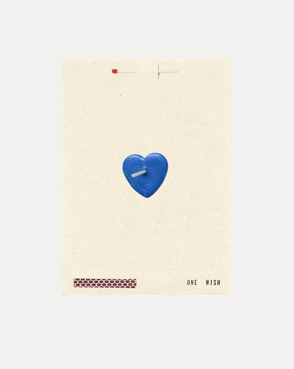 Make the perfect wish. This card features a blue wax-sealed heart with a candle wick at the center and contains a single match and striking pad. A simple, memorable way to mark any special moment, it’s ideal for self-gifting or sending to a loved one.