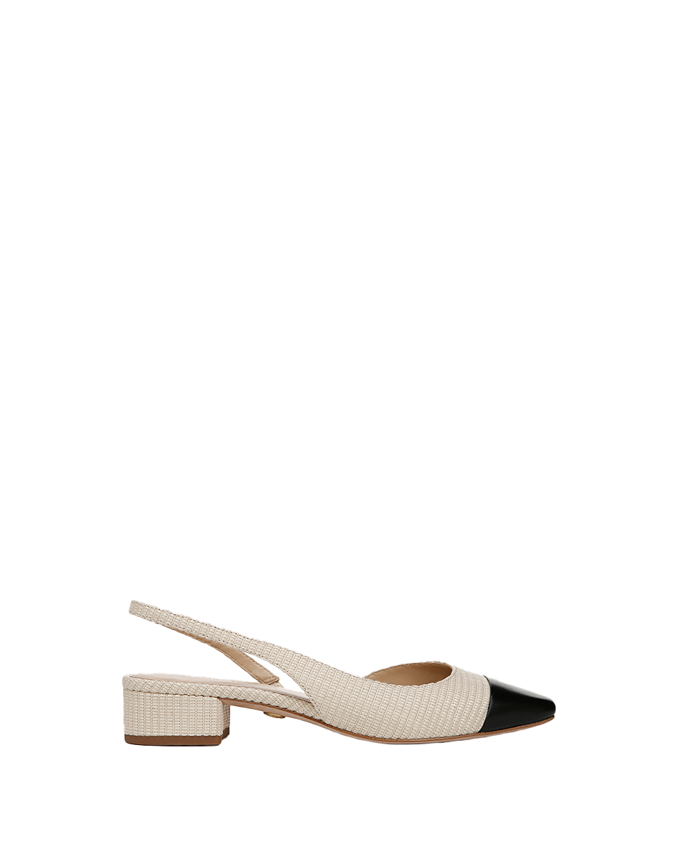 Meet Cecile, our take on the classic cap-toe slingback. Expertly crafted from raffia, this color-blocked style features a tapered suede square toe, a one-inch block heel and an elasticized strap for comfort. Pair with jeans and a button-down—this adds instant polish.