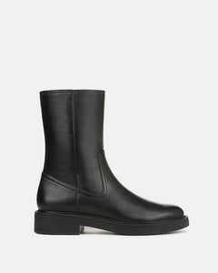 The essential ankle boot—timeless and sleek. Expertly crafted from premium black leather, the Creswell is a clean, minimalist bootie with a slim mid-calf silhouette, rounded toe, and a flat rubber sole with subtle lift. It’s finished with a concealed side zipper for ease. Ever versatile, pair these chelsea boots with everything from wide-leg jeans to maxi dresses to instantly elevate your look.