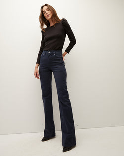 Meet the Crosbie, our high-rise, slimmed-out wide-leg jean is fitted through the hips and thighs and expertly tailored for an elongating effect. Made in LA in premium stretch cotton from Japan and featuring front patch pockets and our signature V-shape belt loop at the back, this VB favorite is as versatile as it gets. We love pairing this with a simple T-shirt and platform heels for a casual-cool style.