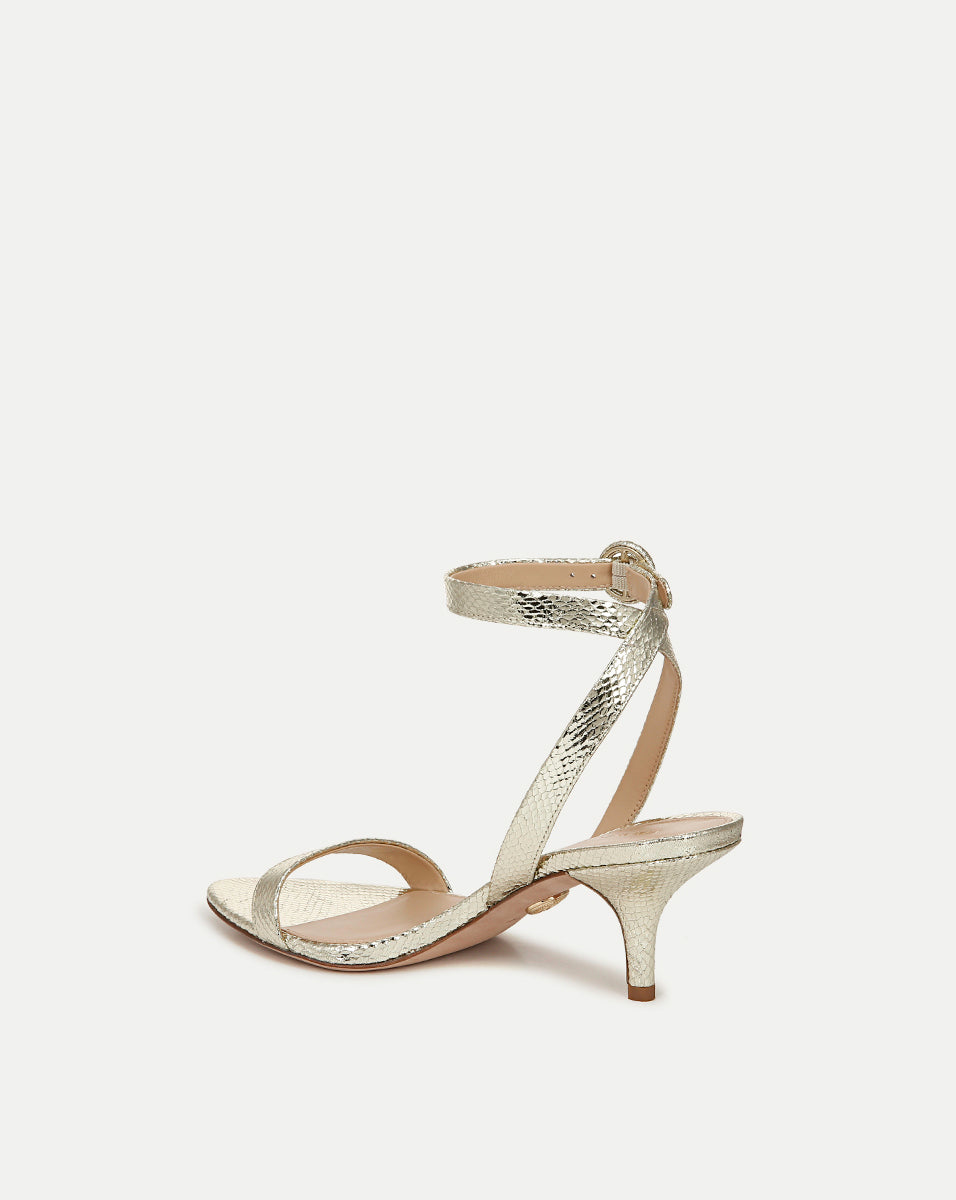 A minimalist, snake-embossed leather sandal with slender straps and a just-right 2” heel. They’re a versatile pair for every dress code.