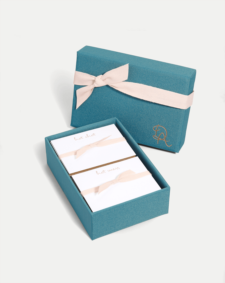 A playful addition to your tablescape. Crafted from smooth, heavyweight paper, these place cards bring both charm and intention to your next dinner party. Each set includes four witty options—Hot Stuff, Hot Mess, Hot Mama, and Hot Shot—all engraved in gold ink and finished with a gold-painted edge. They’re the perfect way to seat your guests and set the tone for the evening. Dear Annabelle celebrates the art of thoughtful giving and festive entertaining. Designed to make every gesture feel special, the brand believes the best gifts are personal, the most memorable tables are joyful, and a handwritten note never goes out of style.