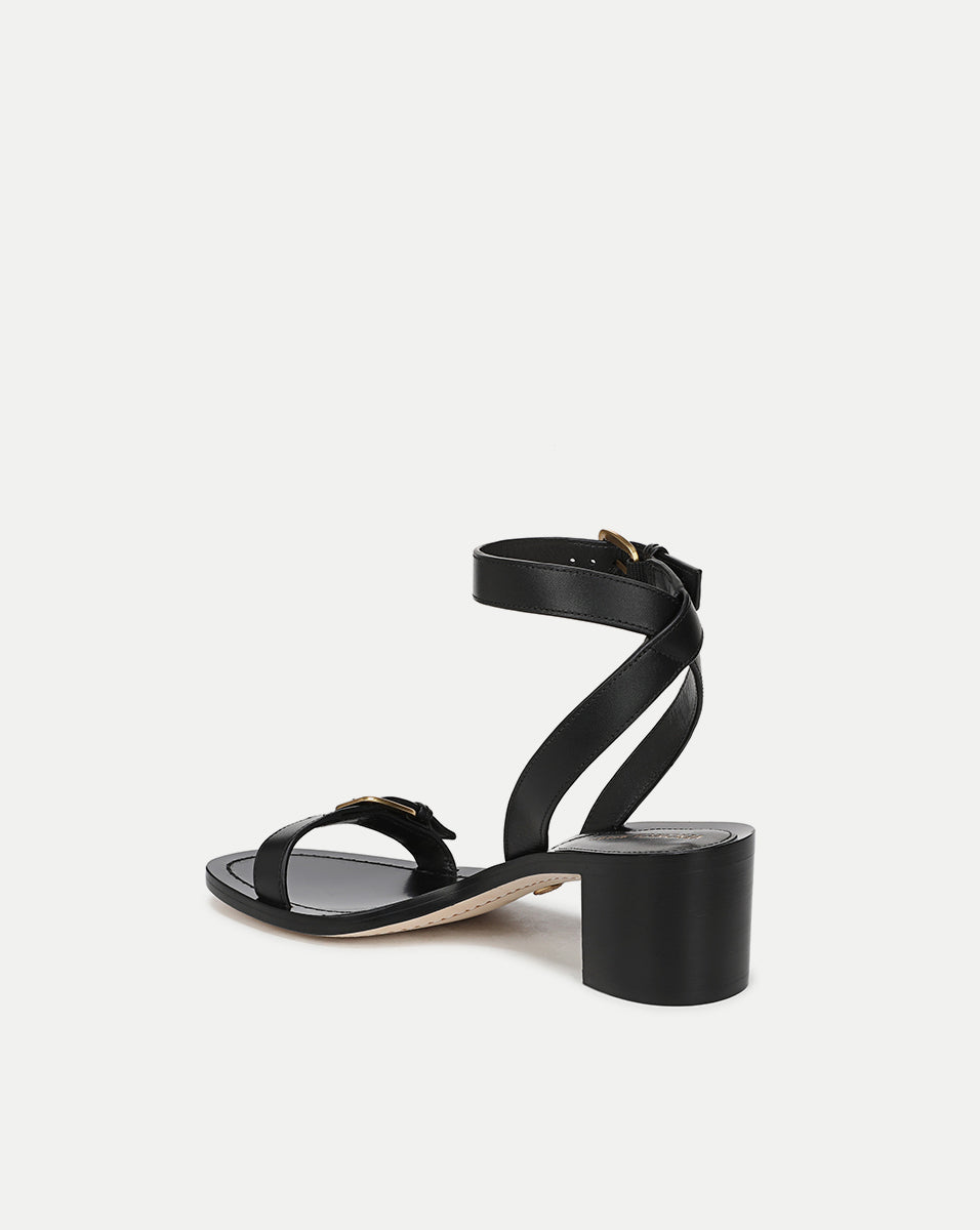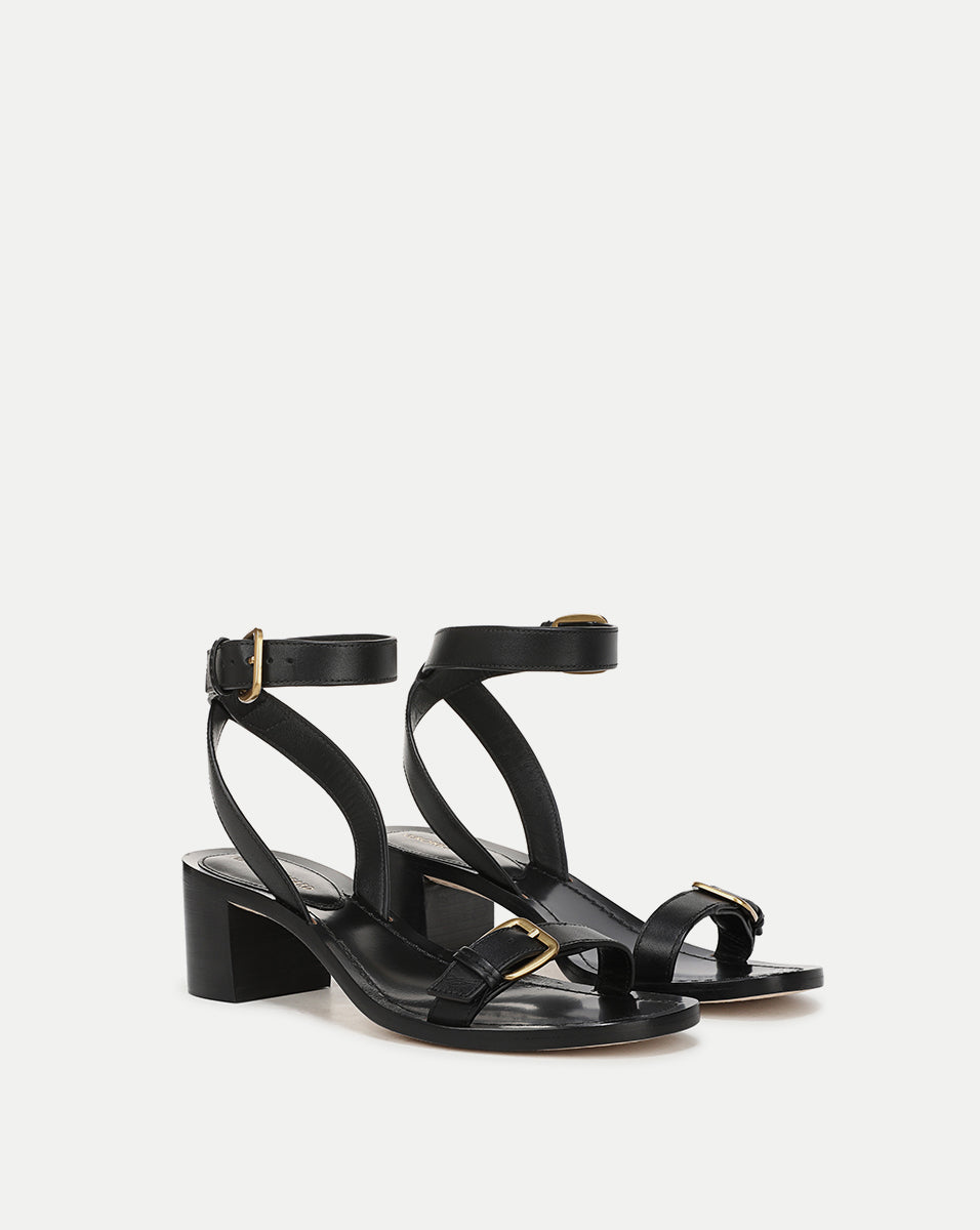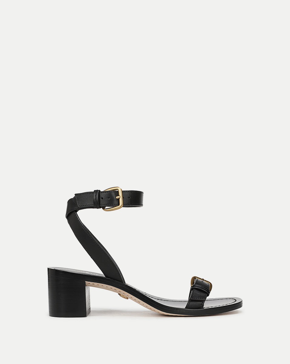 A casual sandal with effortless polish. Crafted from premium black leather, the Elia features a buckled toe vamp and a wraparound buckled ankle strap, set atop a stacked two-inch block heel for ease. Pair it these block heels with jeans and a tee to elevate the everyday.