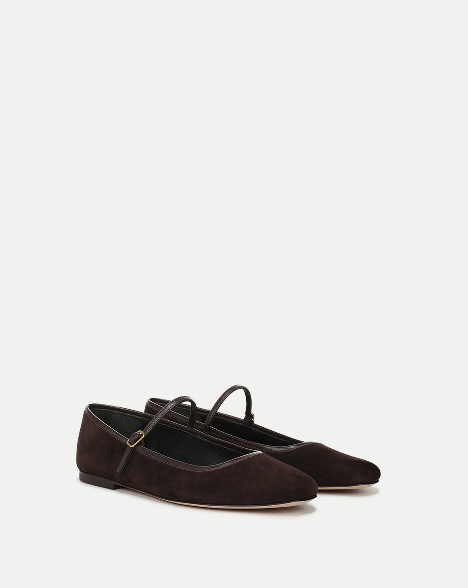 Part ballet flat, part Mary Jane. Expertly crafted from soft black suede with a leather trim, the Ellie is defined by a clean, minimalist silhouette and a single elegant strap. A versatile favorite, it's great for everyday and getaways.