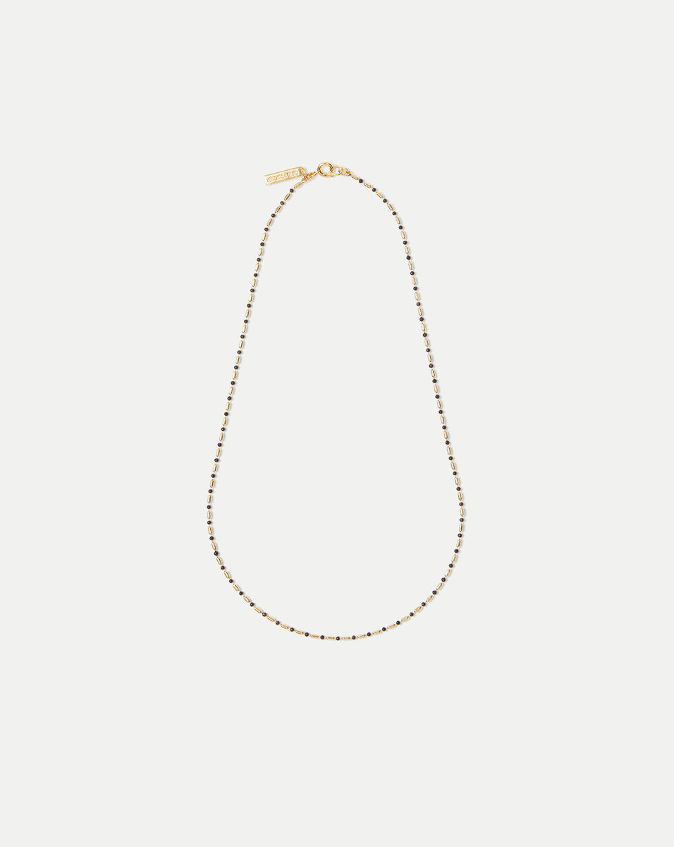 The effortless everyday necklace, made for layering. This dainty, 16-inch chain features a mix of 12-karat gold-plated brass and black enamel-covered beads, securing with a Q clasp for ease. Layer with the Long Enamel Bead Chain Necklace (or two, or three), mixing and matching colors, and style with your favorite VB tees, tank tops, and swimwear.