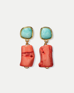 - Gold-plated brass and amazonite earrings with hanging bamboo coral drops