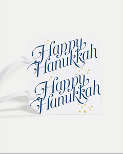 Make every gift feel more personal. Crafted from smooth white paper and tied with a matching ribbon, these Happy Hanukkah gift tags feature elegant navy script and gold star accents. Just sign your name and you’re set.