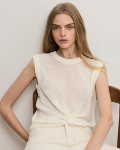 Our lightweight Kellen Sweater is a refined partner to this season's statement bold prints and colors. Crafted from a linen-blend, this twist-hem top features a classic crew neckline and sleeveless silhouette.