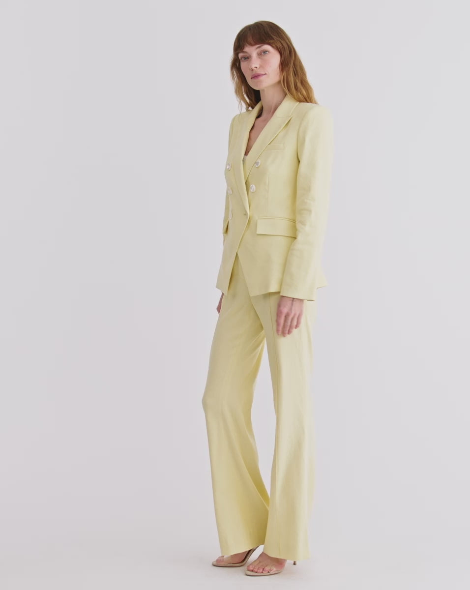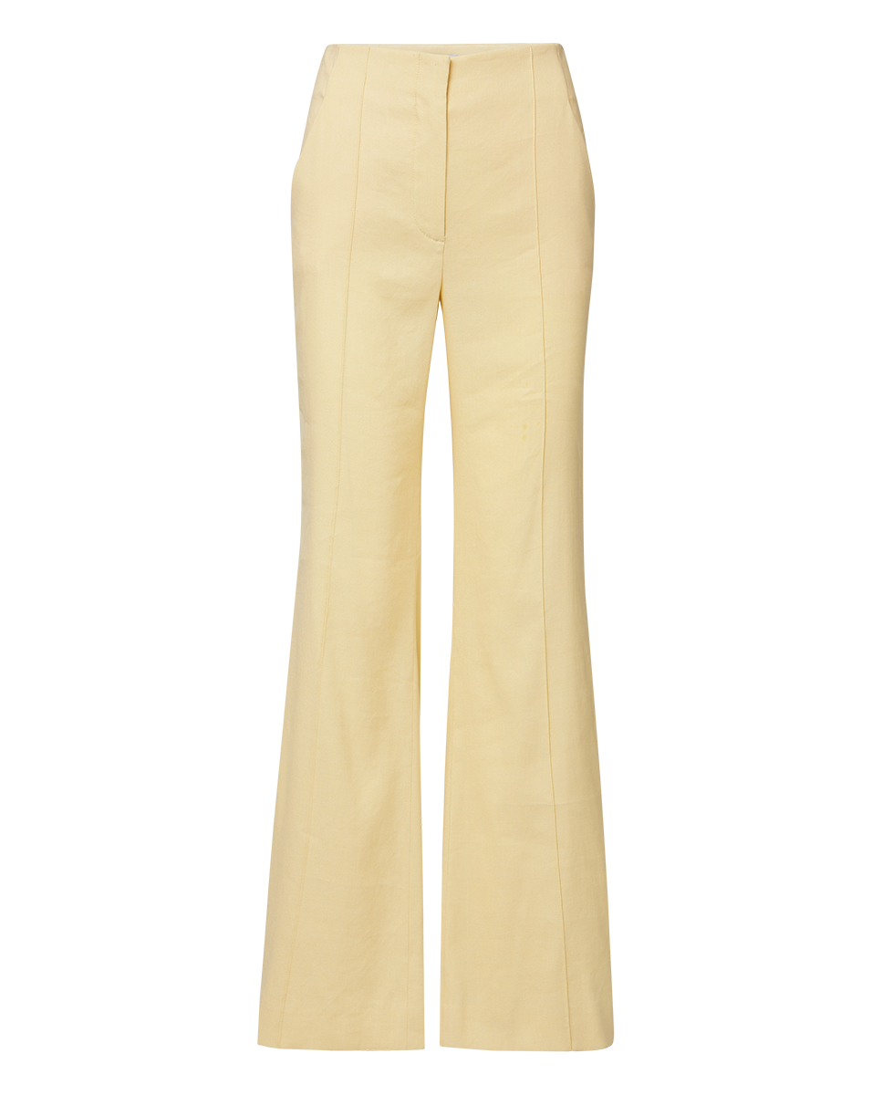 Expertly tailored from Italian stretch linen, the Komi is defined by a fluid wide-leg silhouette. Equal parts relaxed and refined, this standout butter yellow style features a high waist and pressed creasing down the front for an elongating effect. Wear with the coordinating Miller dickey jacket for memorable matching-set moment.