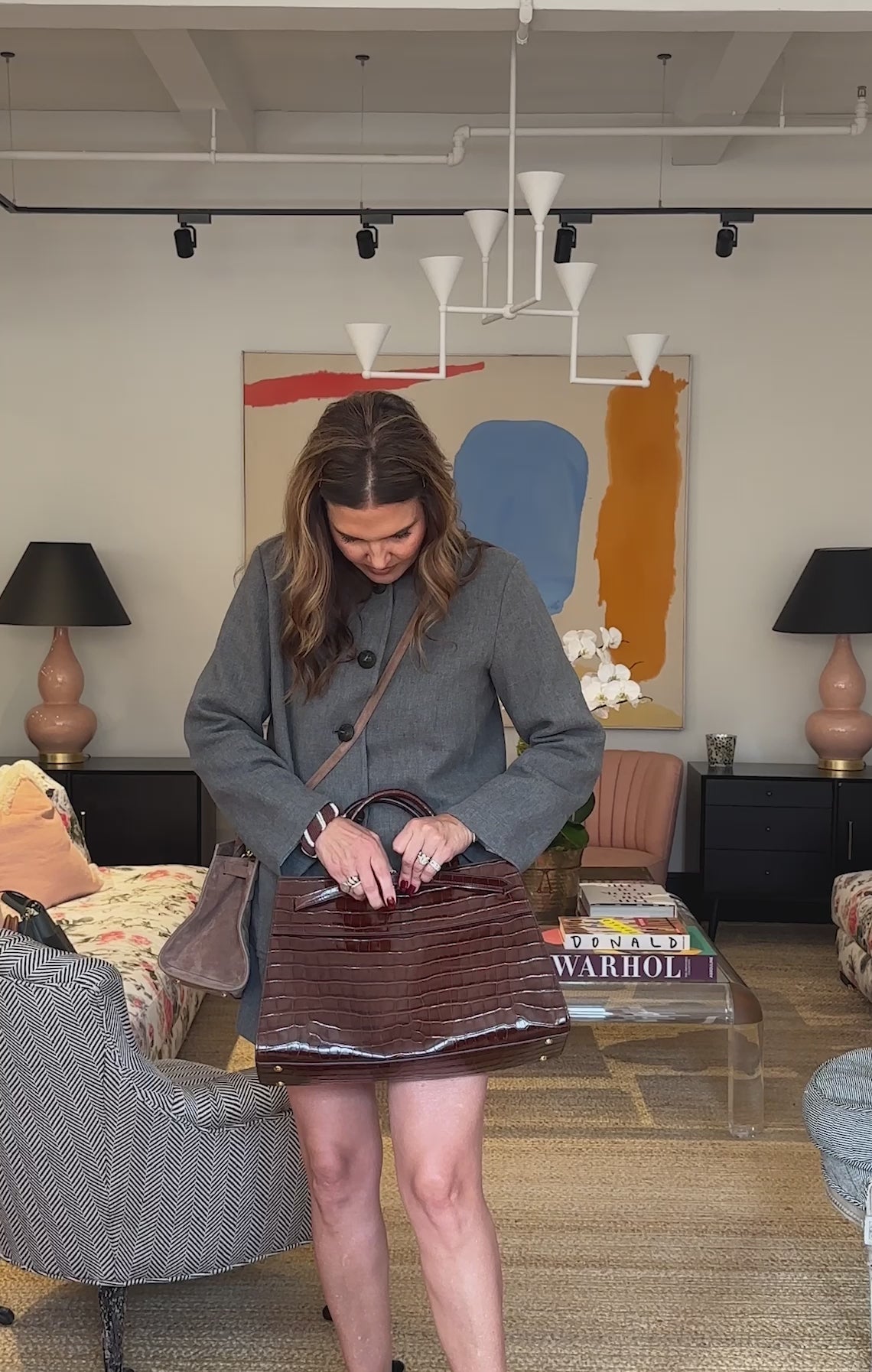 Beautifully crafted in brown croc-embossed leather, this bag is a study in chic sophistication. Aptly named Dash, it's a go-anywhere bag that takes you from C-suite to cocktails. Finished with an adjustable belted strap and slip and zip pockets for organization, it's designed with both a structured top handle and a removable shoulder strap for maximum versatility.