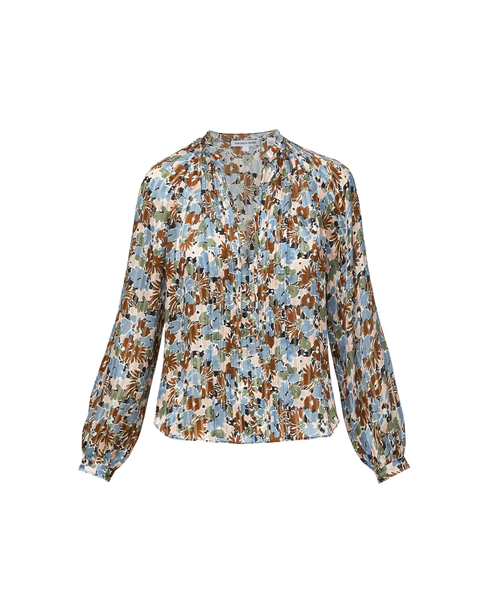 Effortless with a dose of refined femininity. Expertly crafted from 100% silk, the Linds blouse boasts a relaxed fit, gentle blouson sleeves, a self-tie neckline, and romantic blue and green pastel florals. Pair with jeans to elevate the everyday or play up the blush notes in the print with pink pants.