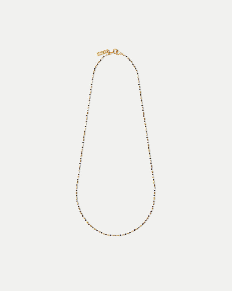 The effortless everyday necklace, made for layering. This dainty, 18-inch chain features a mix of 12-karat gold-plated brass and black enamel-covered beads, securing with a Q clasp for ease. Layer with the Enamel Bead Chain Necklace (or two, or three), mixing and matching colors, and style with your favorite VB tees, tank tops, and swimwear.