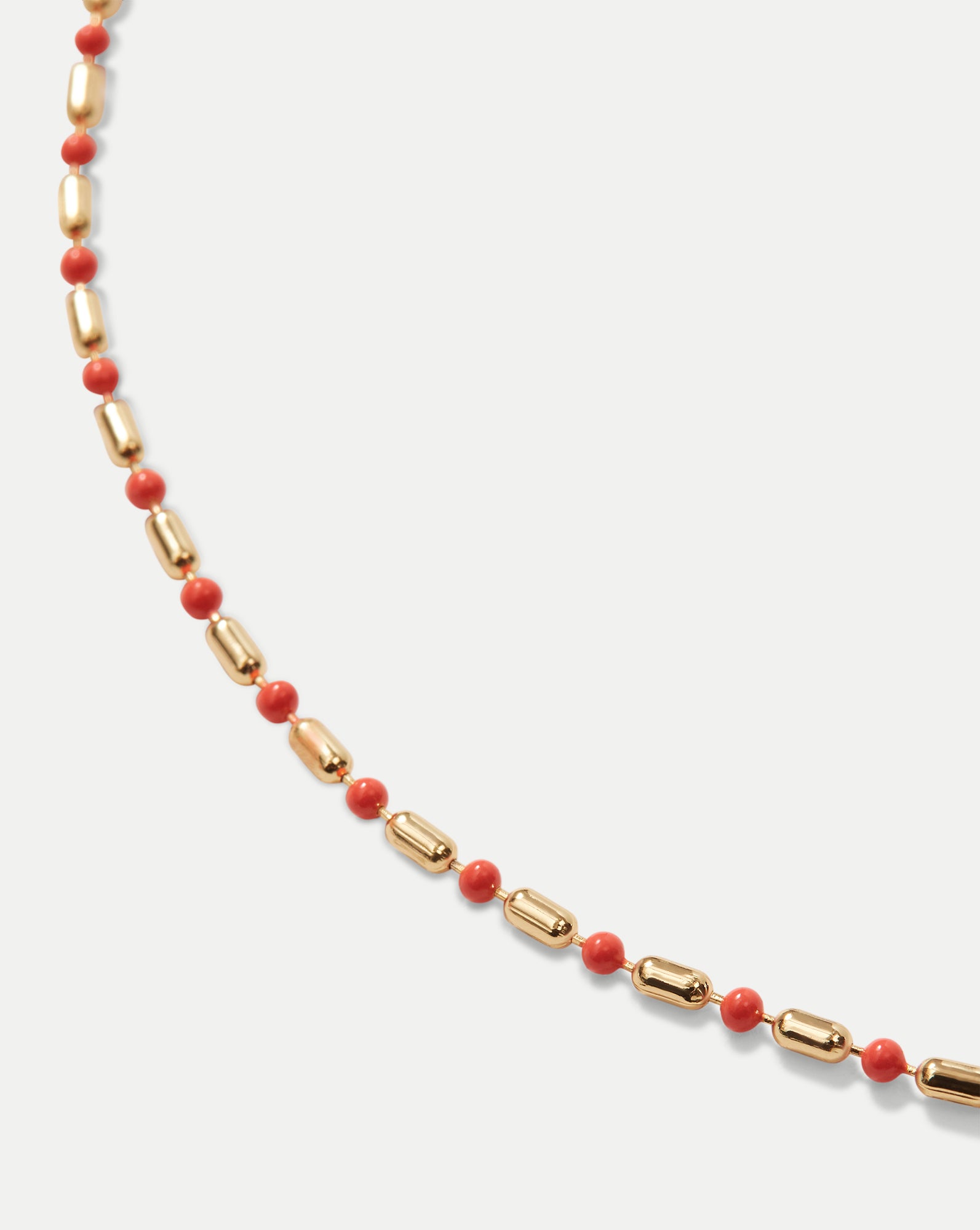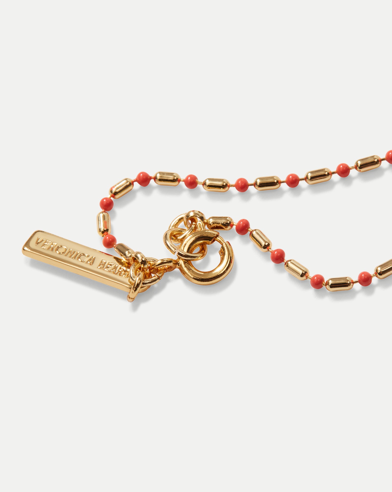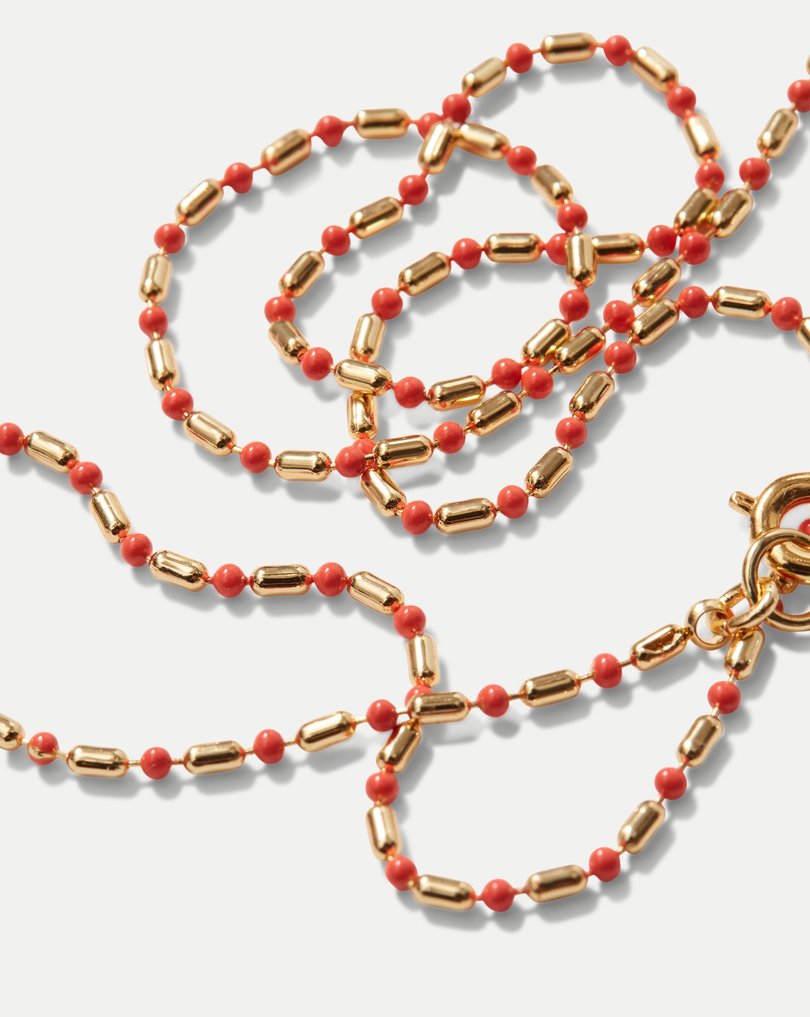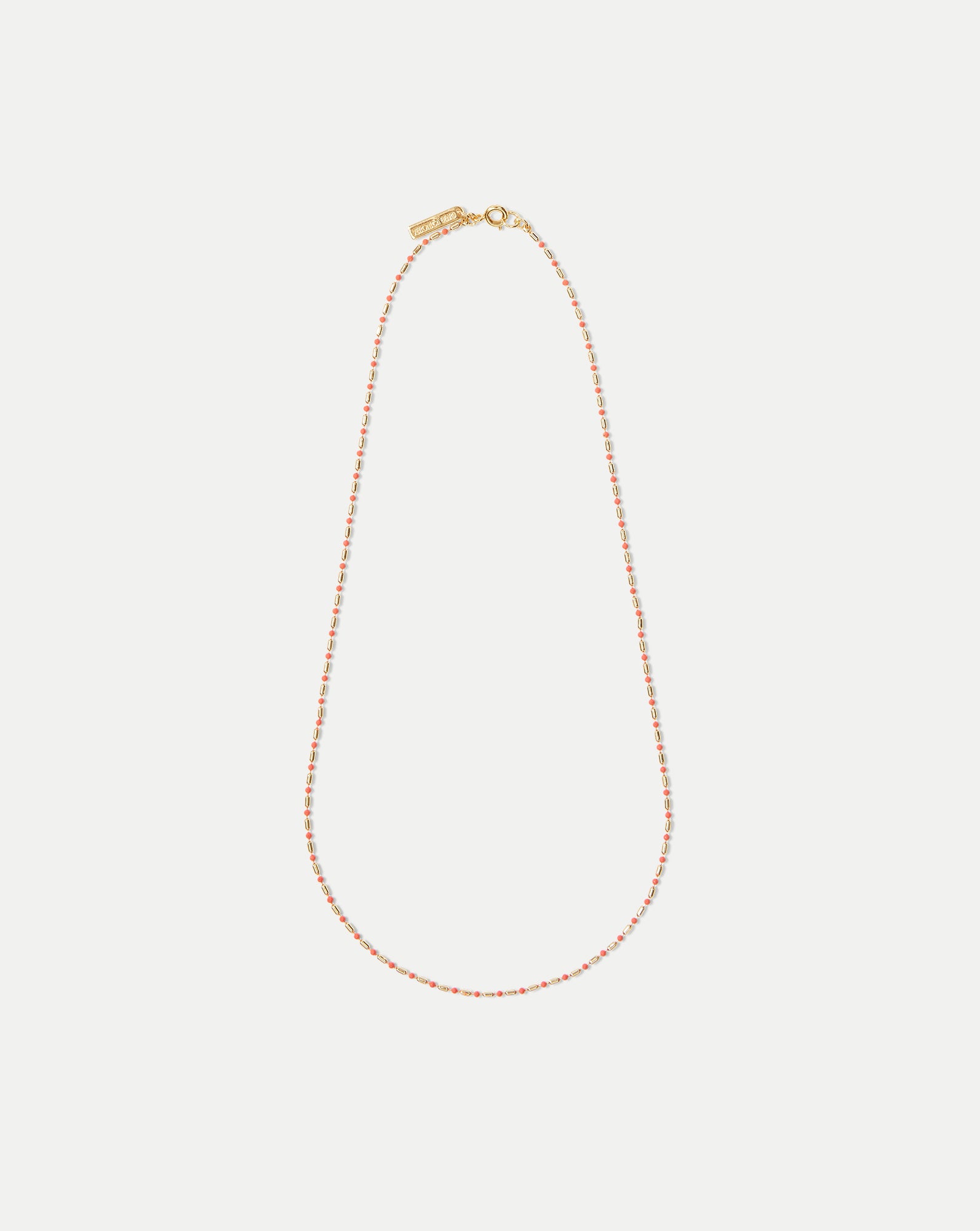 The effortless everyday necklace, made for layering. This dainty, 18-inch chain features a mix of 12-karat gold-plated brass and pink enamel-covered beads, securing with a Q clasp for ease. Layer with the Enamel Bead Chain Necklace (or two, or three), mixing and matching colors, and style with your favorite VB tees, tank tops, and swimwear.