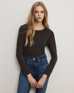 A home run. Mason is an elevated take on the classic baseball tee, featuring subtly puffed shoulders for a feminine twist. Cut for a relaxed, easy fit, it's crafted from 100% Pima cotton for an exceptionally soft feel and finished with three-quarter sleeves and a classic crew neckline. Style it with dark skinny denim and boots for an effortless, polished look.