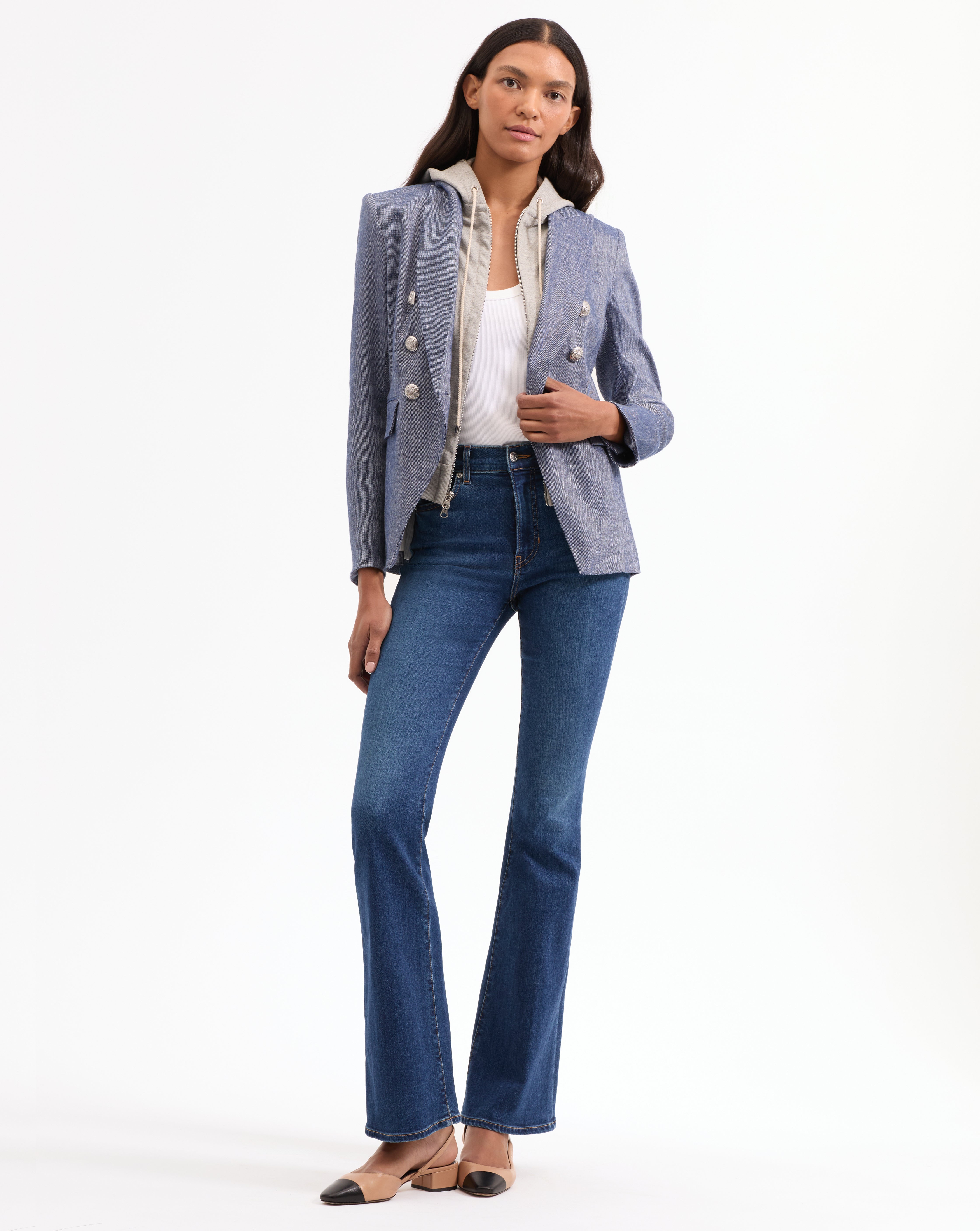 Meet our latest Miller jacket—now updated for warmer weather. Made here in the US, in a stretch-linen blend, this refined and yet lightweight piece will pull all your looks together with ease. Plus, the gold crest buttons give the jacket a polished finish. Throw it over your favorite summer dress for the perfect day-to-night ensemble.