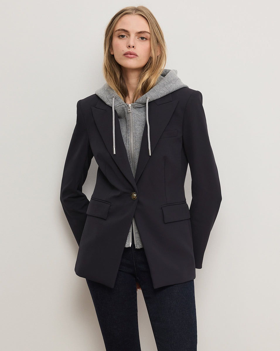 The quintessential navy blazer. Cut for a slim fit, the Naira is constructed from premium stretch blend, allowing for a comfortable fit that moves with you. Featuring single-breasted tailoring and a peak lapel, it’s finished with our signature VB crest buttons and front flap pockets for a polished look. Pair this scuba blazer with the coordinating Dell pant for a complete set—then add a dickey to switch up your look.