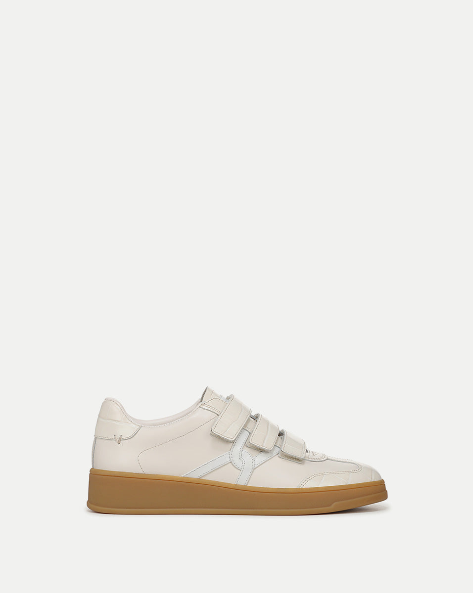 Expertly crafted from smooth and croc-embossed leather, the Reagan combines flattering lines with comfort, featuring thoughtful details like Velcro closures, a padded collar, a cushioned midsole, and a rubber outsole for grip. The interlocking-V design, meanwhile, is a subtle nod to our logo. Equal parts sporty and chic, this lightweight sneaker design—in versatile off-white—will be your new go-to for days on the move.