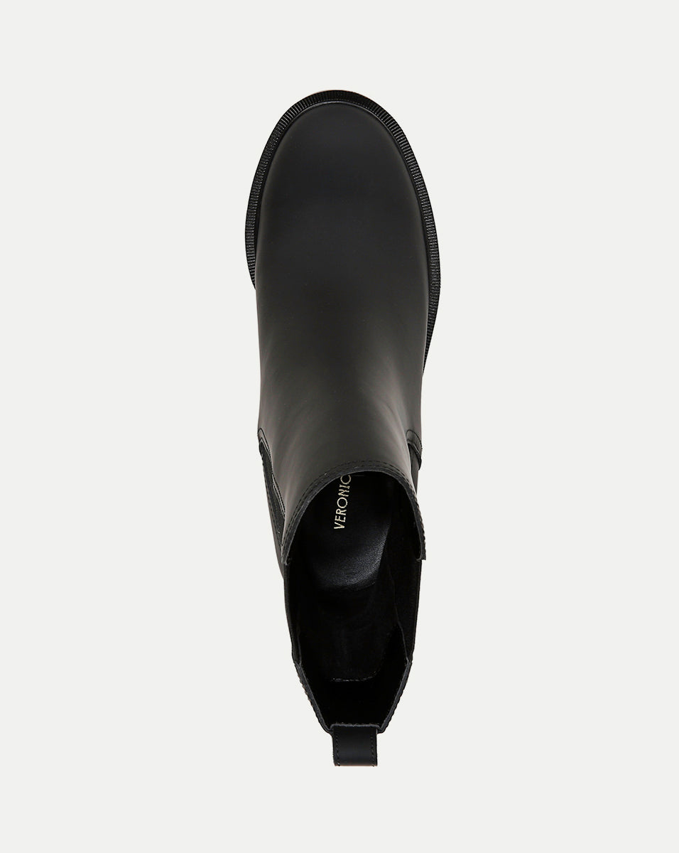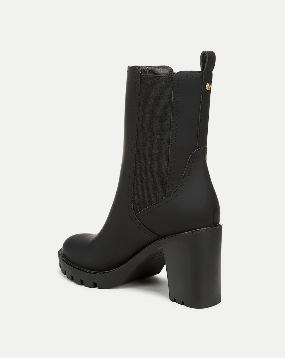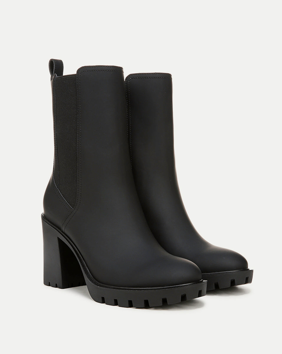 The Riley reimagines the classic Chelsea bootie for city-chic durability—complete with matte rubberized leather and a lug sole. A sturdy 3.5" heel adds both height and comfort while elasticized sides and a back tab ensure pull-on ease. Endlessly versatile, this goes with everything.