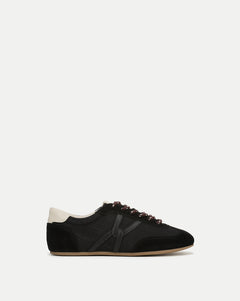 Your new go-to for days on the move. Crafted from luxe suede, leather, and moire satin, the Riviera stands out with its colorful paracord laces and streamlined silhouette. It’s finished with a padded collar, cushioned footbed, and an interlocking-V design that nods to the Veronica Beard logo.