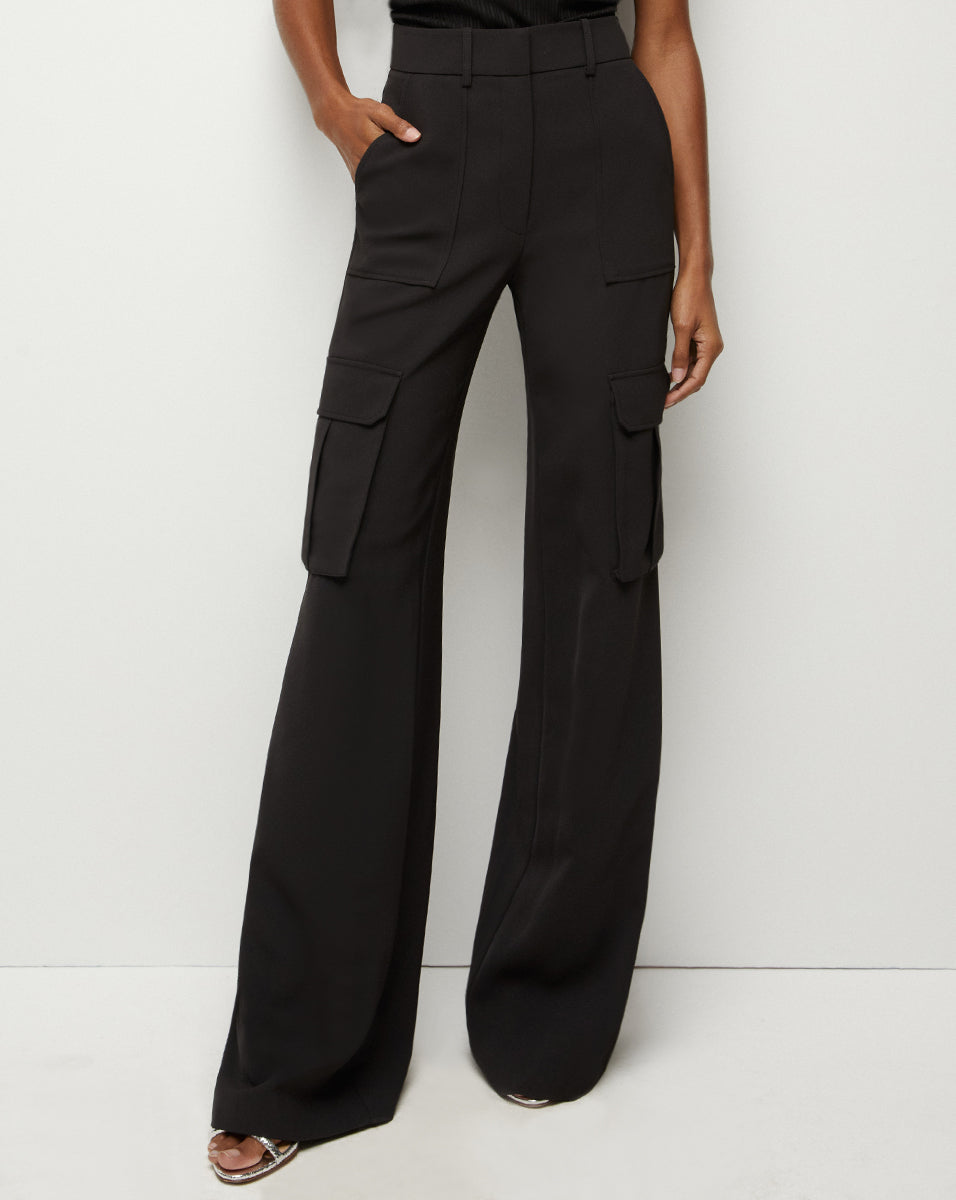 Cargo pants made luxe. Made from a lightweight suiting fabric, the high-rise, wide-leg silhouette boasts both cargo and patch pockets for supreme versatility—and on-trend detail. Tuck in your favorite top and finish with heels for your next night out.