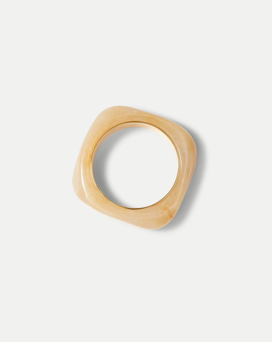 The statement bangle, perfected. Expertly crafted from premium sand-colored resin in a sculptural, organic shape, this chic summer bracelet is finished with a 12-karat gold-plated brass inner rim for a luxe look and feel. Wear it solo or stacked—it pairs perfectly with your favorite VB swim and other summer favorites.
