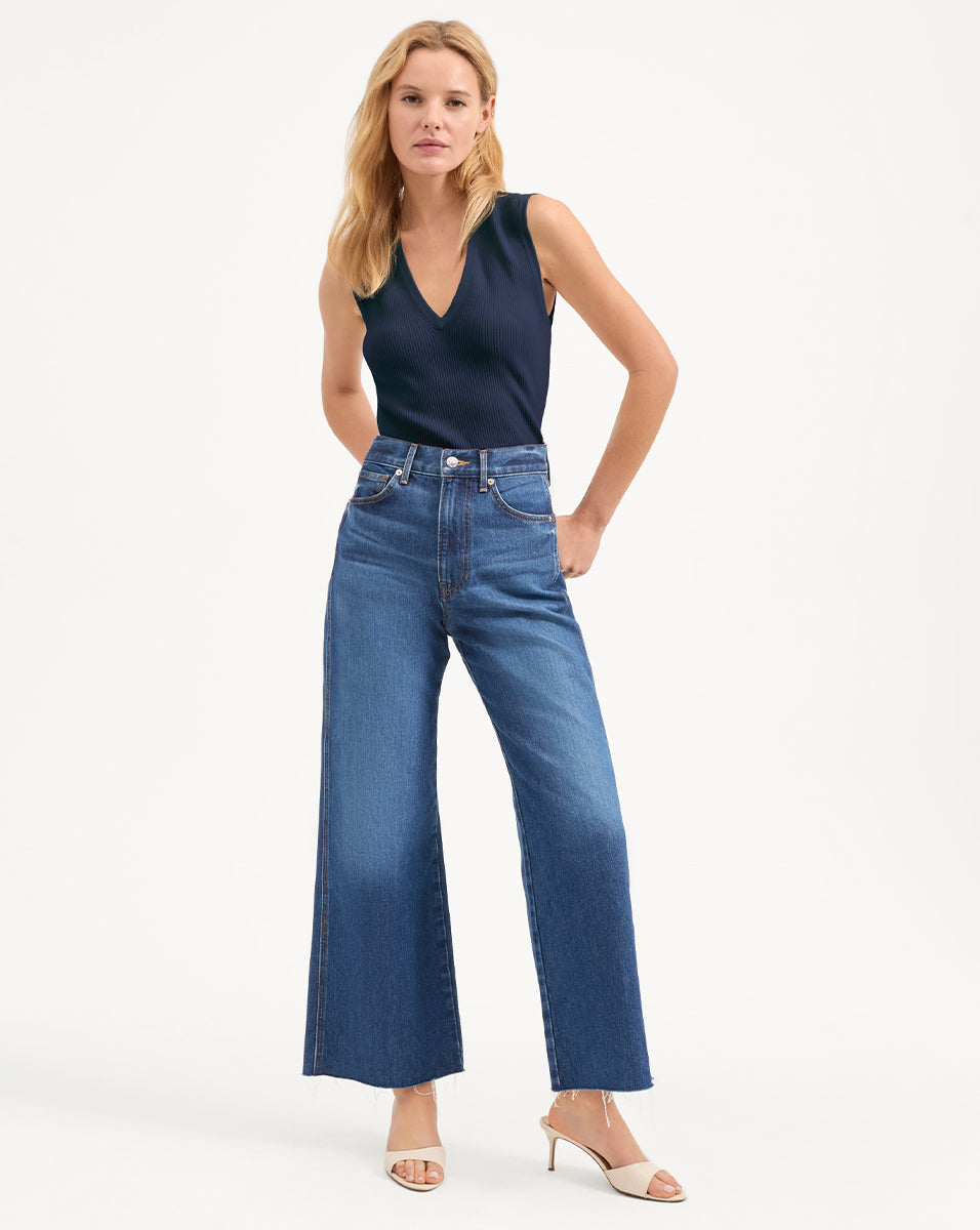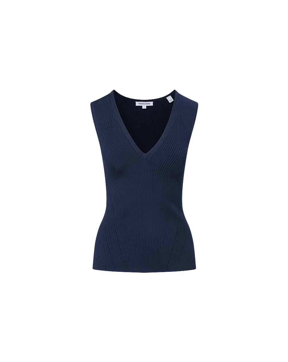 The Sid knitted tank top is the go-to top every woman needs, perfect on its own or as a layering essential. The lightweight shell is made from a stretch viscose-metallic knit with a shiny finish and features an allover ribbed design. Wear this v-neck top with anything and everything—we especially love it with a leather skirt and a jacket for the perfect desk-to-drinks look.