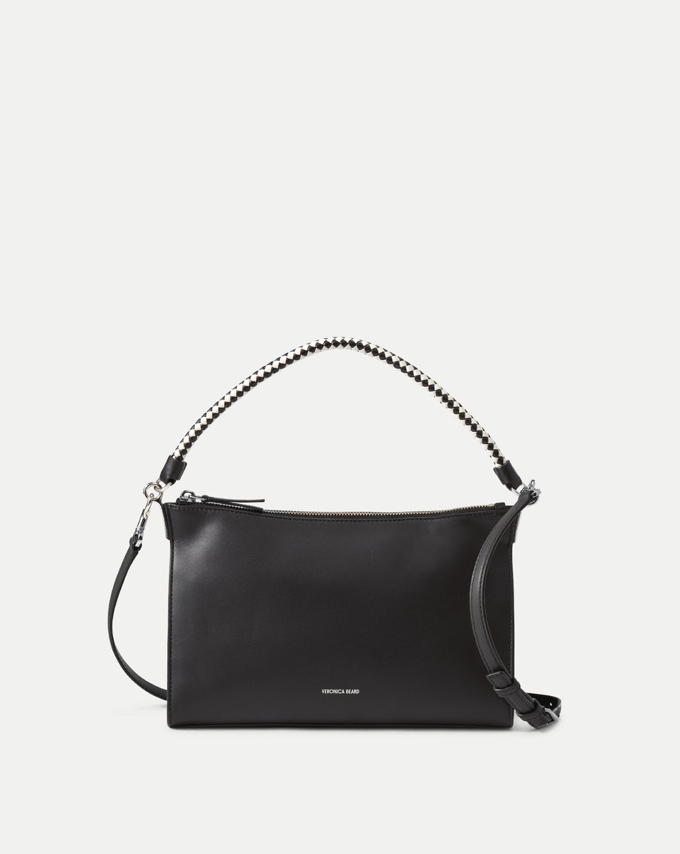 A smaller version of our Vida bag—that's still roomy enough to carry life's essentials. Crafted from supple, smooth black leather, the handbag features an understated pouch silhouette. Designed for ease and versatility, it includes a two-tone braided leather handle and an adjustable, removable tan crossbody strap. A zip closure ensures everything is kept secure while the microsuede interior features multiple pockets to keep you organized.