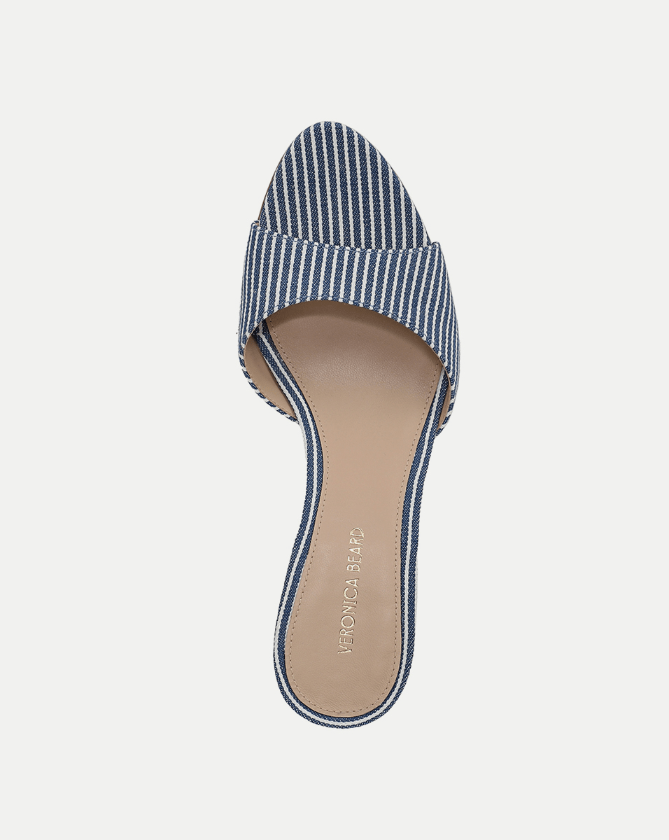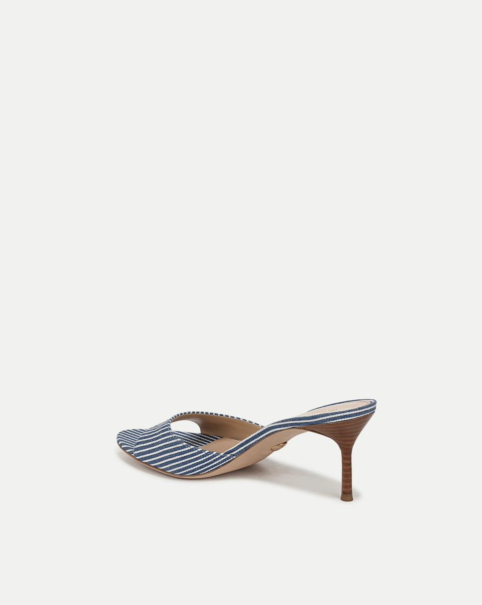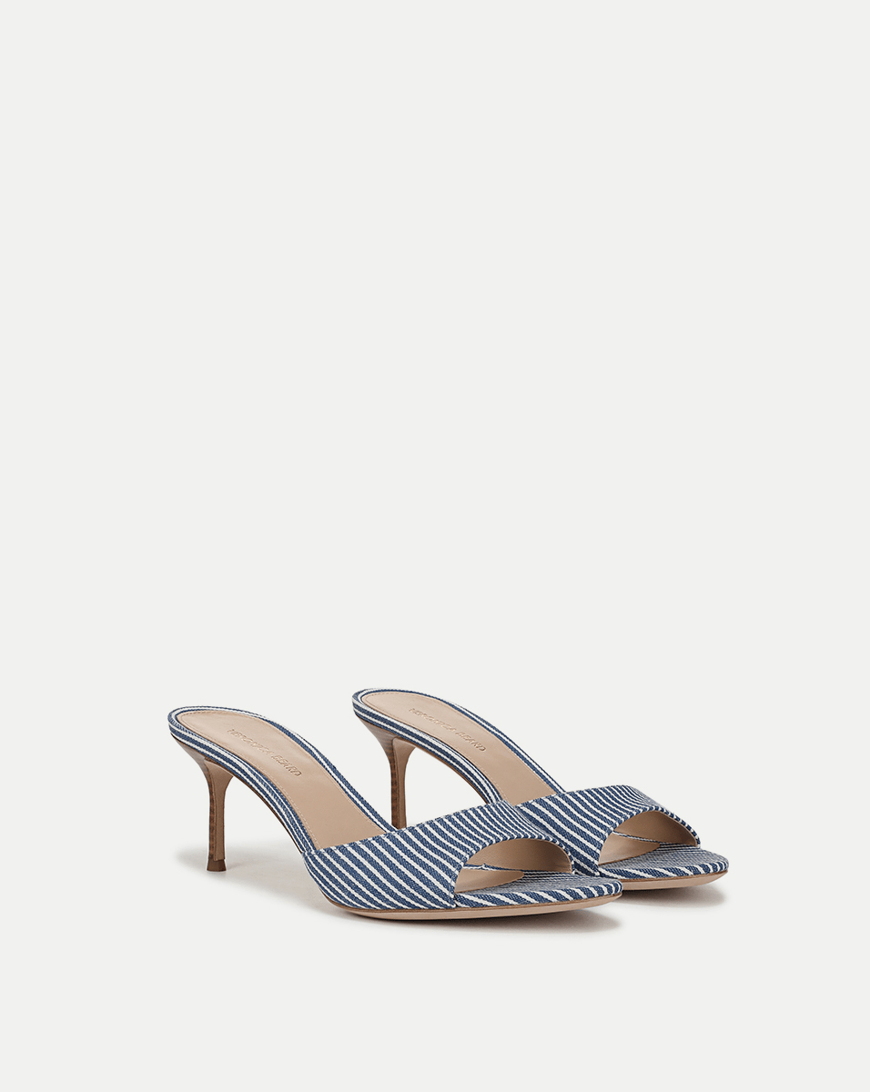Equal parts elegance and ease, the Tia kitten heel is the ultimate in versatility. Featuring a blue striped denim body, a chic short heel and a cushioned leather footbed, this can easily be dressed up or down. Wear it to work with a skirt-suit or pair with jeans and a button-down to elevate the everyday.