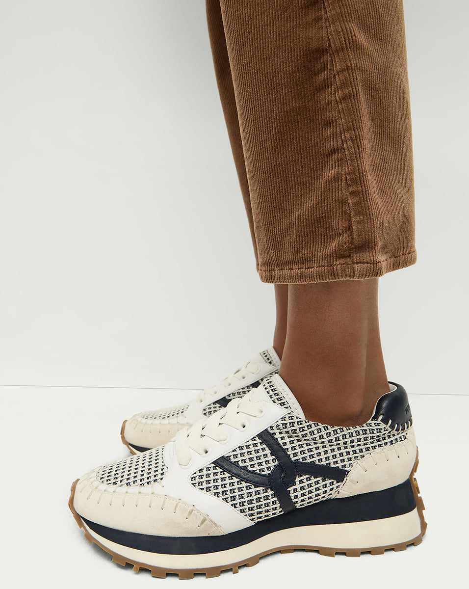 The Valentina sneaker combines flattering lines and comfort: a padded collar, a cushioned midsole with a two-inch lift, a rubber outsole for grip and stitched details. The interlocking-V design is a discreet nod to our logo. Equal parts sporty and chic, this lightweight design will be your new go-to for days on the move.