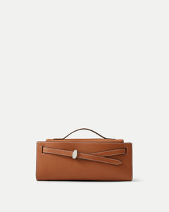 Our iconic Dash bag, now as a clutch. Crafted from pebbled tan leather, it carries the essentials you need—including the largest iPhone—and features a slim top handle and an adjustable belted strap. An interior zip pocket keeps cash and credit cards organized and secure, while the removable, adjustable shoulder strap adds hands-free versatility.