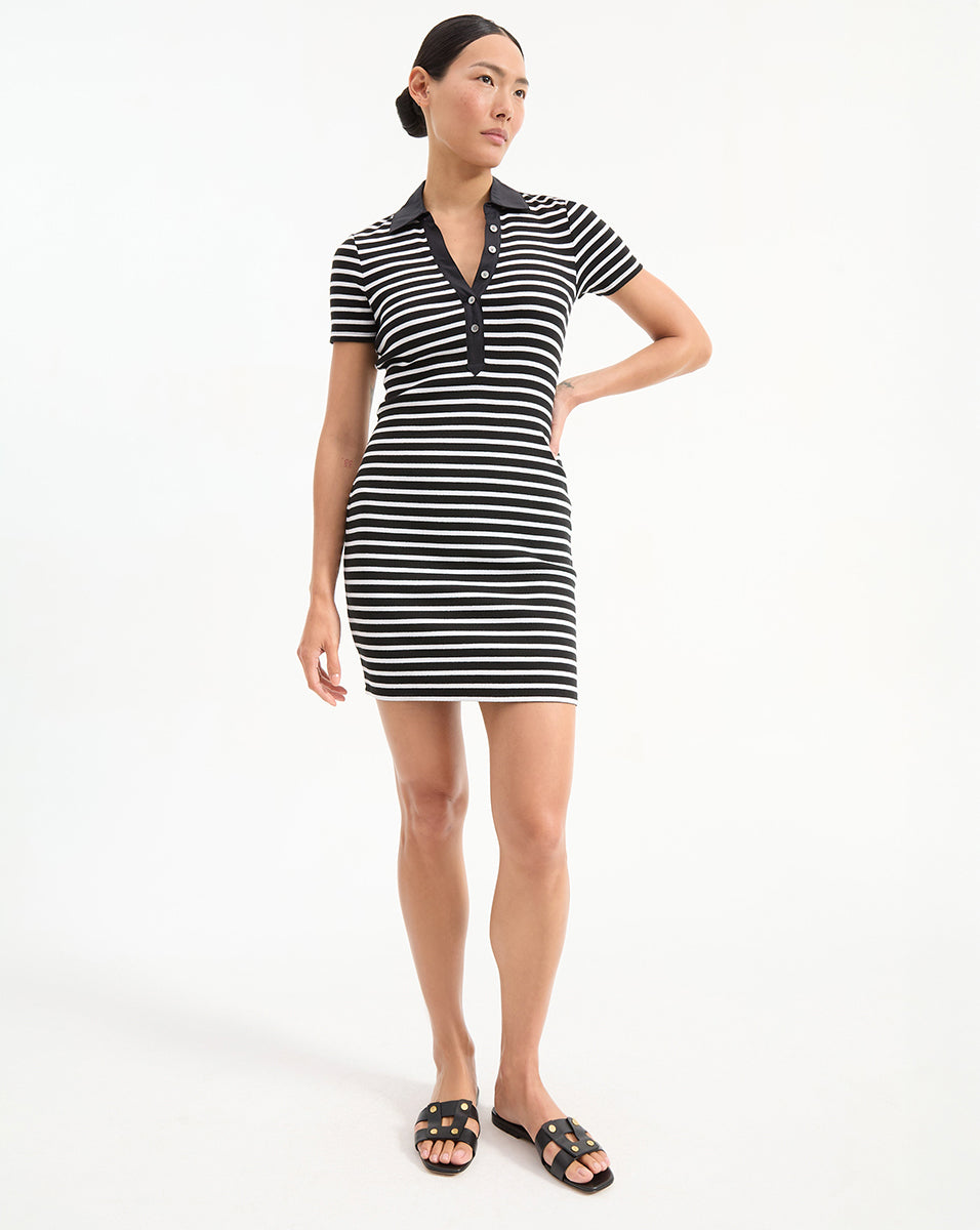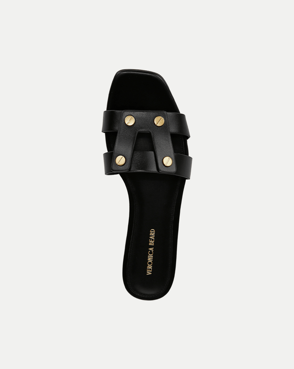The quintessential sandal every wardrobe needs. Expertly crafted from black leather, the Via open-toe slide features a minimal multi-strap silhouette, punctuated with gold hardware. Equal parts polished and effortless, it’s the shoe that goes with everything—day to night, week to weekend.